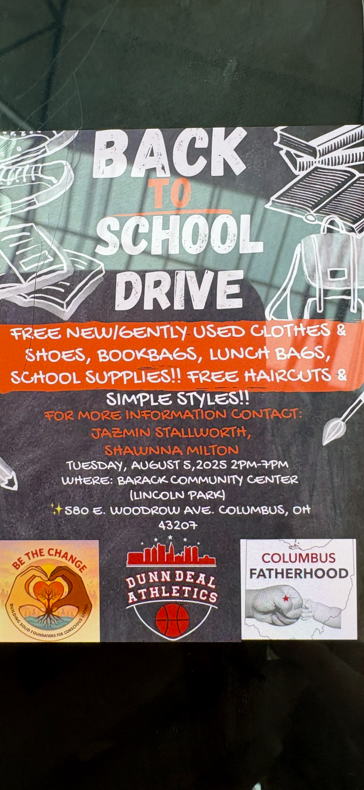 In collaboration with local changemakers—Be The Change, Dunn Deal Athletics, and Columbus Fatherhood—this impactful event was held on Tuesday, August 5, 2025, at the Barack Community Center (Lincoln Park). These organizations, along with dedicated volunteers, came together with a shared mission: to equip children with the confidence, dignity, and resources they need for a successful school year.